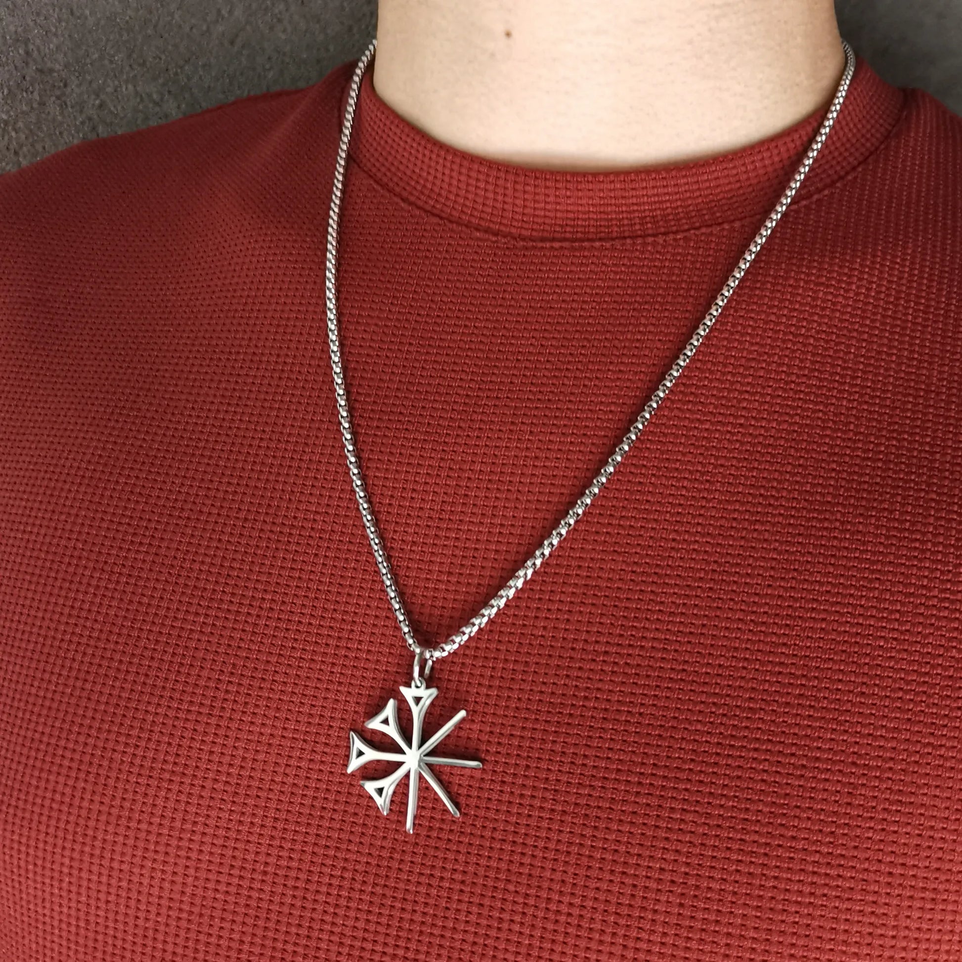 Alphabet Necklace Sumerian Dingir Cuneiform Pendant Mens Stainless Steel NK Chain 4mm 24''
