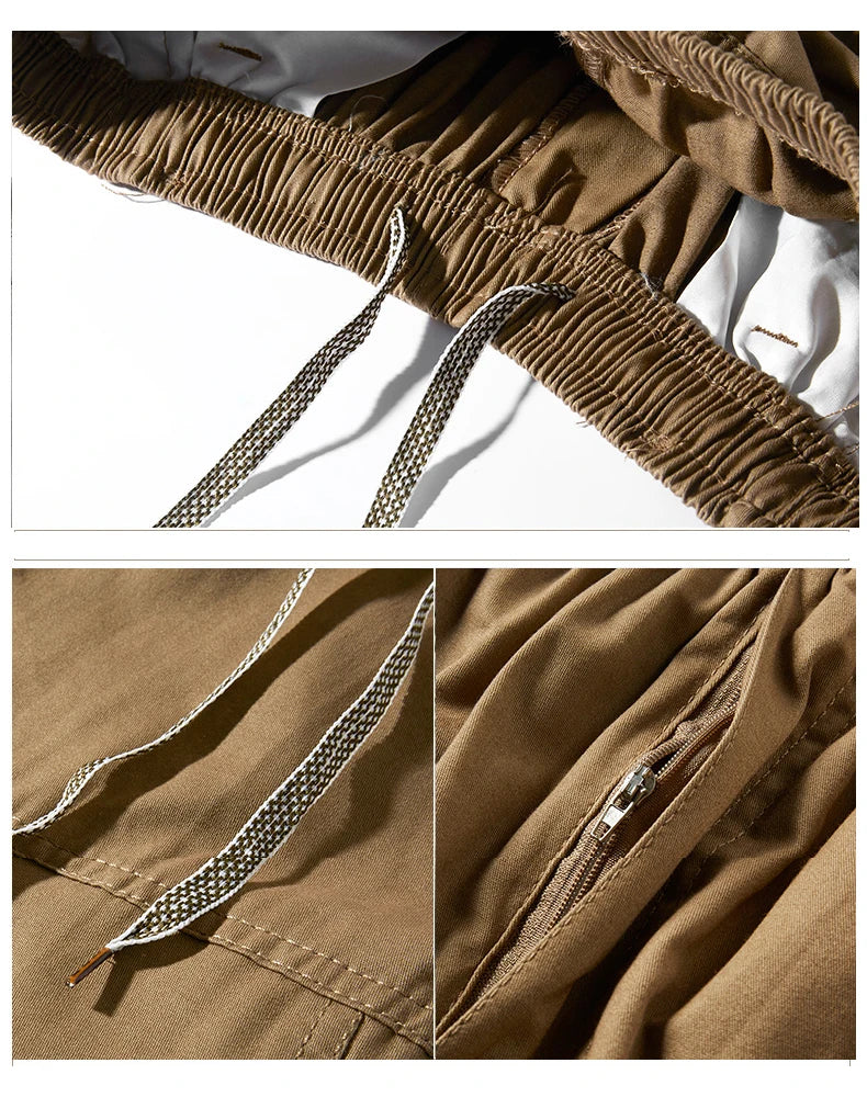 Mens Cargo Shorts Knee Pants Zipper Pocket Summer Cotton Shorts Climbing Jogger Elastic Waist Sports Wear Casual Short Pants