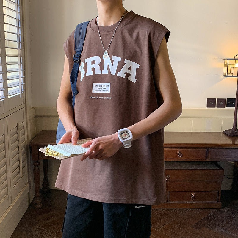 Tank Top Mens Summer Pure Cotton Outerwear Sports Fitness Sleeveless T Shirt Mens Trendy Loose Size Basketball Camisole Mens